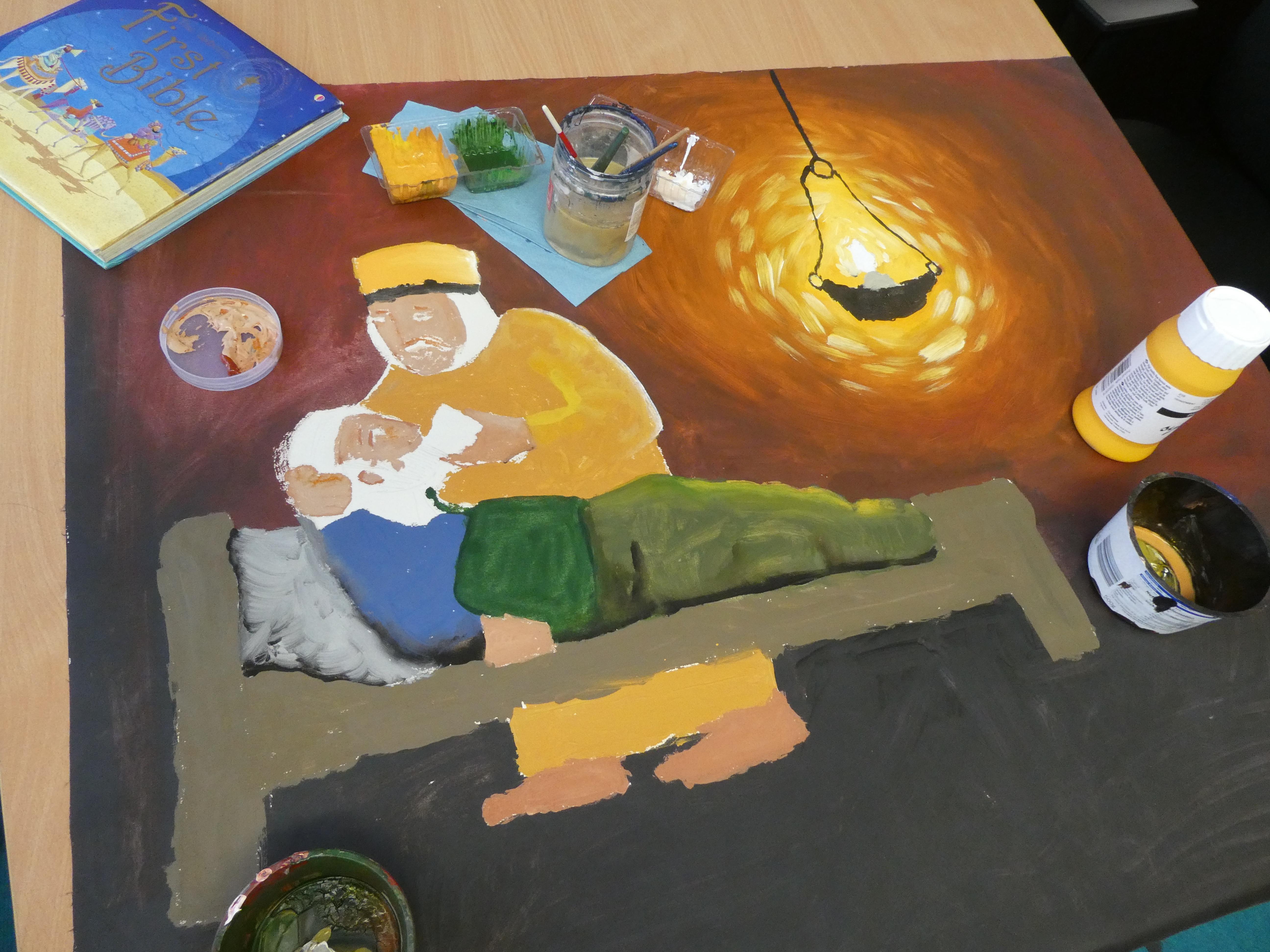 We have discussed our values and community as a Church school. With this aim, we looked for a parable which represented our ethos and culture as a school. The pupils from the School Leadership Group chose the Parable of the Good Samaritan. They felt that this represented our school values and aims - that we are inclusive, accepting, welcoming, and will pick someone up if they fall down. The work on this piece of art work has now been completed with local artist Sue Salter.